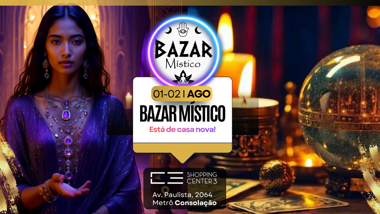 No Bazar Místico você encontrará tudo o que precisa para ampliar sua conexão espiritual e dar suporte à sua busca rumo ao autoconhecimento e bem-estar para ter um 2025 repleto de prosperidade, amor e saúde!